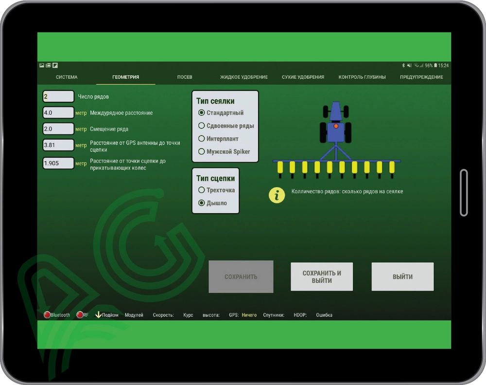 - ручний або автоматичний контроль норми висіву (Rx карти